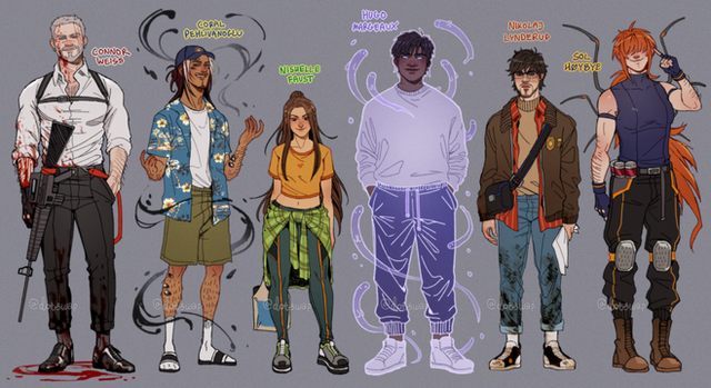 🐺❄️ “a charming nuisance of a person who is mutated by an ancient alien power, Rasha makes getting into trouble and somehow getting out an entire lifestyle.”i made new key art to go along with the updated bios i have planned for all 7 of my ocs! basically just to capture their vibe along with their main color scheme