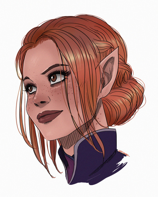 #bun #dnd #elfears #halfelf #lipstick #pale #portrait #redhair #redhead #portraitcommission
