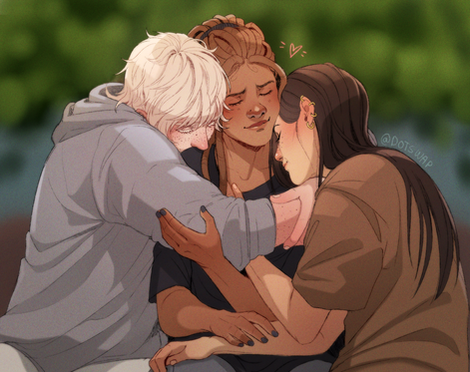 this image is accidentally ass quality bc i forgot to resize it when sketching, so sorry if thats noticeable though im probably the only one who sees itmore brainrot of these two. i had a break but its not over lmfao. park has this thing where she subconsciously wraps people she likes in vines or her vines reach out for them. sort of like extra sets of hands???? its something im trying to incorporate more.