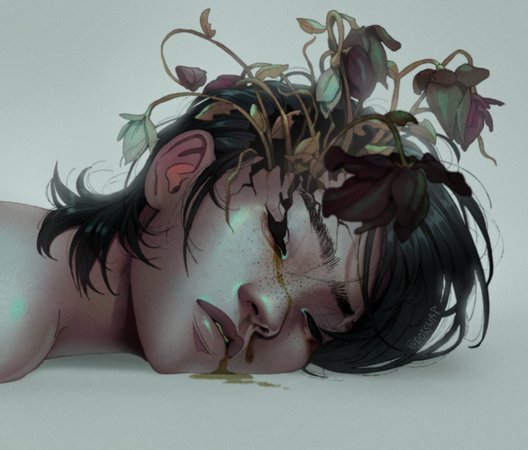 vent art turned into a whole illust. damnthis is very similar to a piece i did way back in 2017 (see below) about the same shitty feeling - not really an improvement piece per say but itβs interesting to see how much i rely on the same imagery to rep the same struggles.