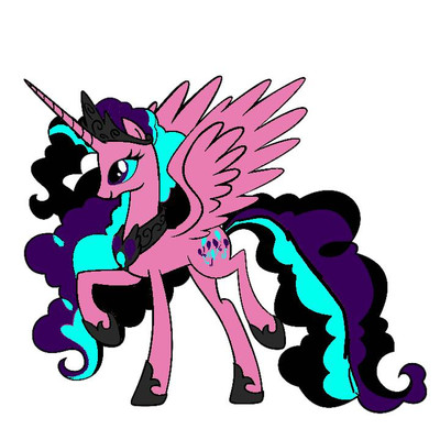 Her wings are modeled after a swans, Just much larger to fit her body and i thought she'd be one of the few to get gradient wings and i changed her makeup color to a dark purple, her mane/tail just like Fluttershy's got certain colors from their once rainbow powered forms