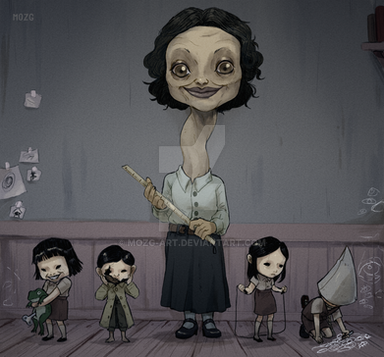 This is so well done, the perspective, background and characters look so good, i like to think this is a timeline where Mono waits until class is over, so he can sneak past easily, but isn't considering how persistent the Teacher is.