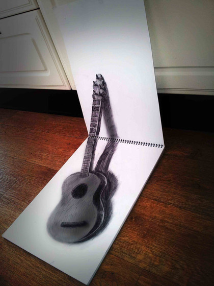 Then after you bend up the left half, you put the camera at a 45 degree angle to the image.
