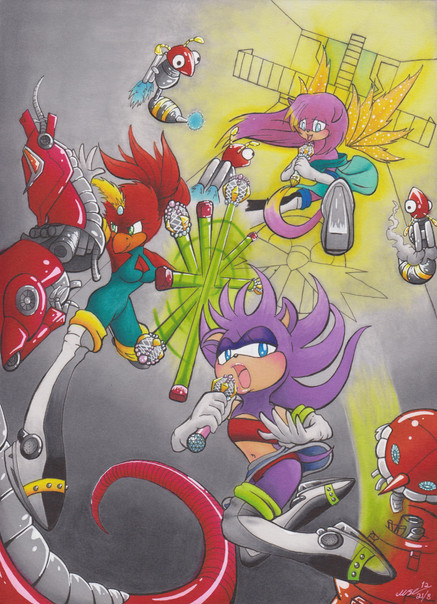 Thanks for the comment, I really appreciate it. Yeah the rocket looks a bit off, a motion blur would have made it look more in motion, and I'll need to keep that in mind when doing moving things. As for the plane, it was a last minute thought to add it in or keep it out from the rest. I was planning on drawing more going on in their, but time was running out and I felt it would look a bit off if there were more planes or ships in the sky. Not to mention only Tails has a plane if I remember correctly.