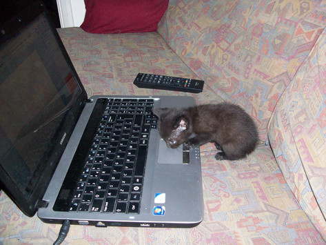 IT'S YOUR CAT EATING YOUR HAND! ON A DIGITAL ART WEBSITE! ON TOP OF YOUR MONITOR! AND IT'S A LOUSY, CHEESY PHOTO WHERE ALL WE CAN SEE IS 1/2 YOUR ARM!