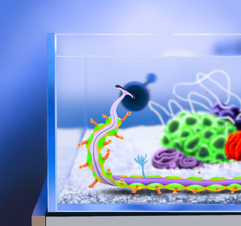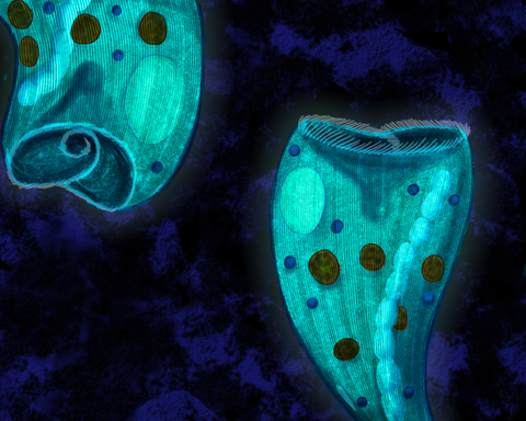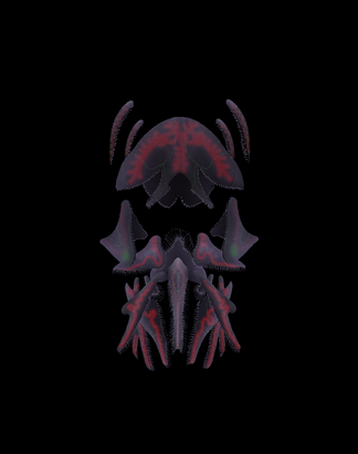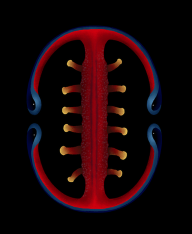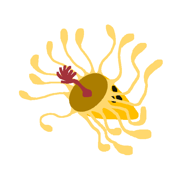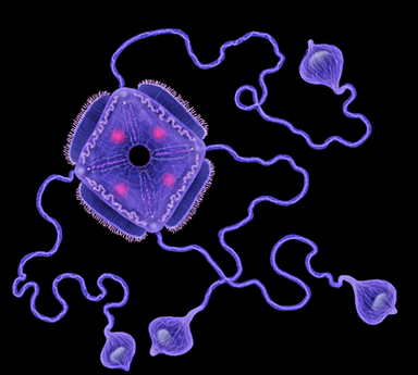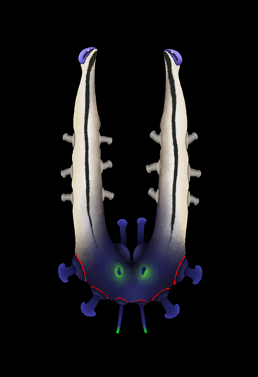 Sphaeroculum, a small pharyngopod between 5 and 6 cm in length. The compound eyes located at both ends of its body form a globose shape that serves as protection against predators, acting as shields thanks to the hardness provided by the aragonite lenses of its ommatidia. This behavior is similar to that probably had the ancestors of the ophtalmocerids, with which Sphaeroculum is not closely related. Its multiple digestive zooids, which also serve as locomotor appendages, have a mouth specialized in trapping microorganisms. It is a common genus in coastal waters and is associated with caulostomes, with which they maintain commensalism relationshipRelated content