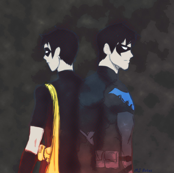 Dick as Nightwing and Jason dressed as Nightwing from the book "Nightwing : Brothers in Blood"I'm getting to know the people and the stories surrounding Batman, it's very complicated but interesting