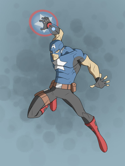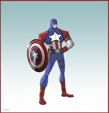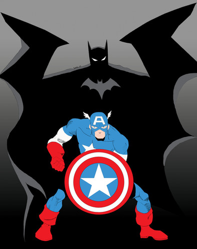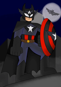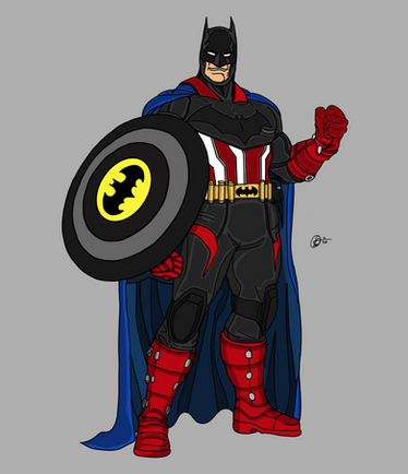 Drawing for an article on TopTenz.net "10 Marvel DC Superhero Mashups" [link]Captain America+Batman.