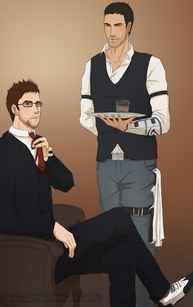 i read a fanfiction to go with this pic. it was desmond and shaun having a nerf fight to reduce stress. XD it was awesome.. thats how i found out about this picture, she posted up a link in her story