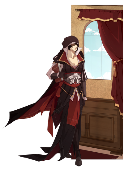 I want to believe that this is a female version of Ezio and not an assassin with the Altairs master assassin clothes in that case I really love this image good work.