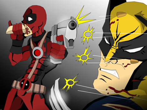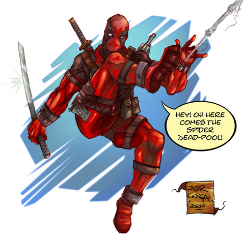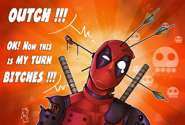 Deadpool... who did you piss of now? I will say ninja, but a scissors in his butt...? That make me wonder...