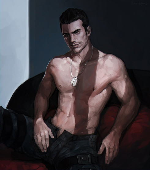 Ugh, if I was gay, or a gal, I would enjoy this. BUT the anatomy is really good and why does he have the Outsiders mark on his peck and not on his hand, it looks cool, but it's on the back of his hand.
