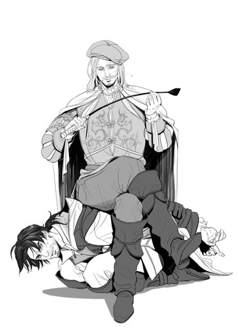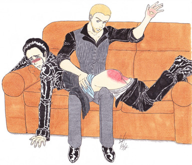 From all the other pieces the characters look all smug (the ones who are doing the spankin' -3-), all except for Edward. He's genuinely pissed. XD
