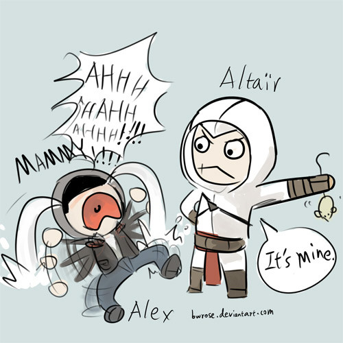 If I were Altair, I would be more worried about Malik telling him embarrassing stories and corrupting his fragile mind XD