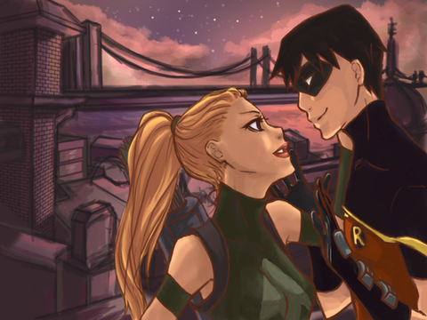 A quick one, Green Arrow and Black Canary.The couple is so cute and hilarious, they're my most favorite canon so far.
