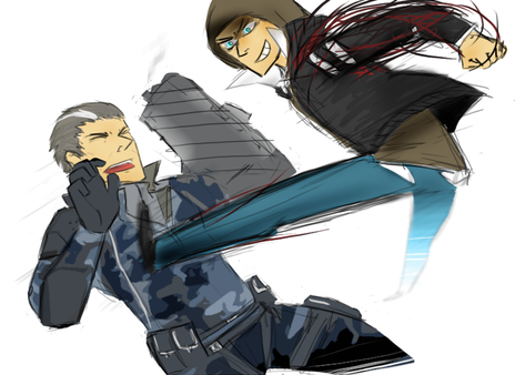 Its strange to think that robert.(with no superpowers except for the robo grenade arm, could be more then a match for alex). But it happened and he is a bad ass!!! But it looks like alex has something up his sleeve with that little smirk and lets face it, his right arm is gettin ready to pone cross.