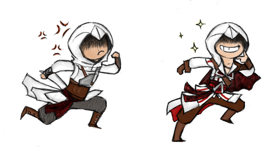 This is so damn funny. Lol. I love Altair and Ezios faces. :3