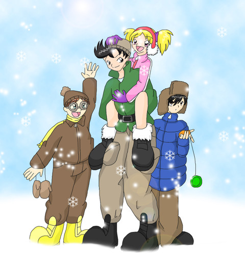 This is simply TOO great to be legal. Christmas College Ed's! XD I simply ADORE the outfits you've put them in! Especially Ed's placement of mistletoe, very clever indeed. Eddy's face at his soggy cigarette is very clever too - given I used to have ice cream on cold days when I was little makes this picture all the more heart warming! Double D's giggly face is a perfect touch too.