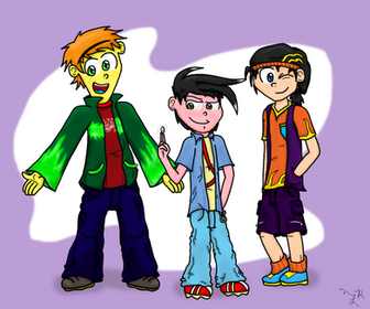 This is a drawing of 's version of the Eds in college. I have my own version, yes (I might do a winter drawing of them, too....hmmm....), but her version is just so much more colorful and fun to think up outfits for that I simply HAD to do them again.