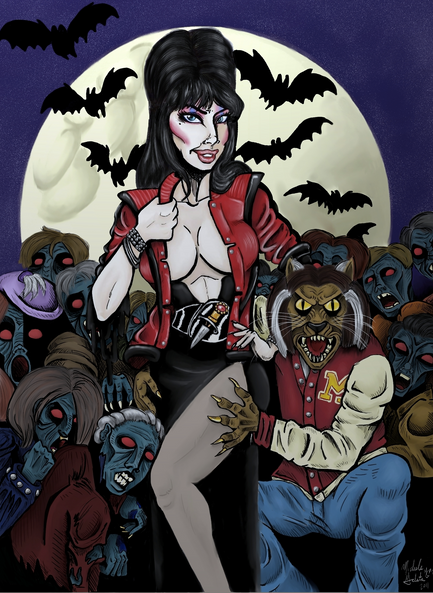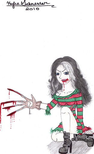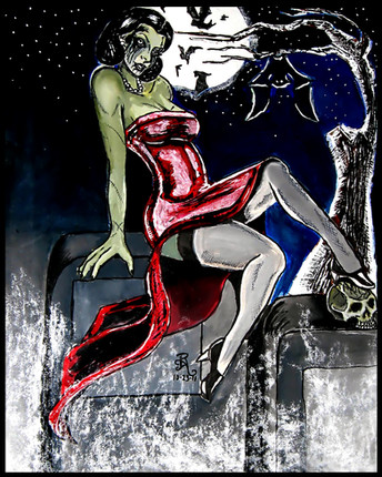 I like the pose you've drawn here, and she looks very creepy as a zombie! Nice coloring for this piece as well! Great work!