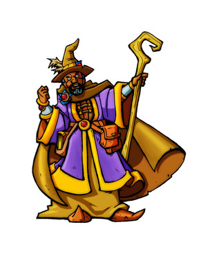 His name is Knolan... Supposed to be one of the most powerful sorcerer's in the world of the comic, but he lives away from society untill events of the story force him to come out of hiding. I did a pencil sketch of this a few years back that's in my deviant art page.