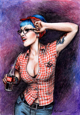 A beautiful pin up girl with a refreshing CocaCola. This one was extremely difficult for me. Trouble with the proportions.Related content