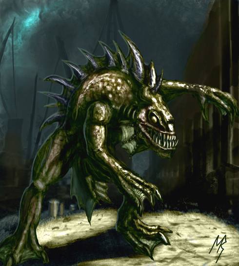 This drawing is inspiring me to make a real FX costume after it, and use it for a Live Lovecraftian game in Spain ( www.puebloMaldito.com ) I love the strength and the fishy unexpresive face. Awesome work. If it finally comes to live i'll let you know.