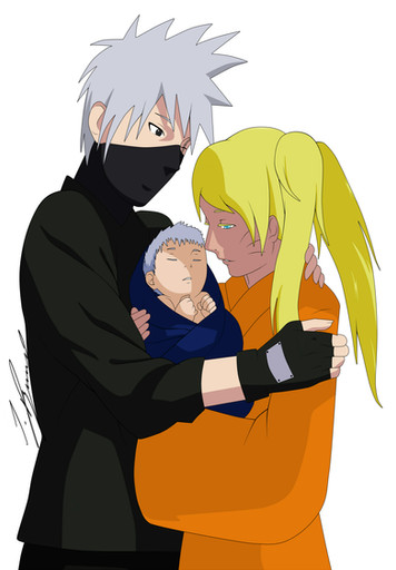 KakaSaku and baaaaaby Enoki...Enoki is from Silvershine's fic House of Crows.