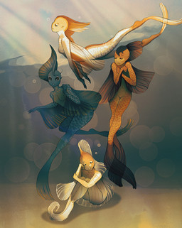 Light-hearted and simply done. Her feet look like they wouldn't support her if she tried to walk. Yet it doesn't seem to matter, she just looks so care free.