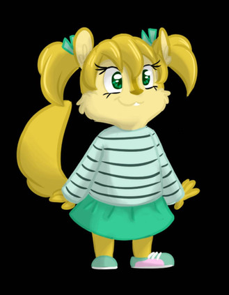 I like to think she's got an effortless beauty that Brittany envies. A rocker-chick, could-kill-it-in-a-dress-but-likes-baggy-shirts type of gal. She's one of the Chipmunks' oldest friends; hanging out with three rowdy boy chipmunks is bound to make her a little rowdy herself! And yes, she's interested in Alvin. They were besties as kids. But she doesn't get him in the end and she's happy being single anyway.