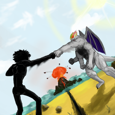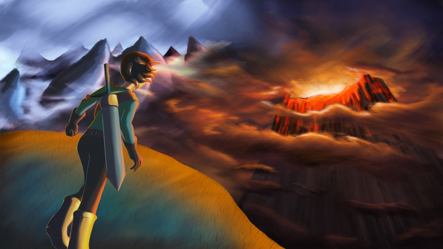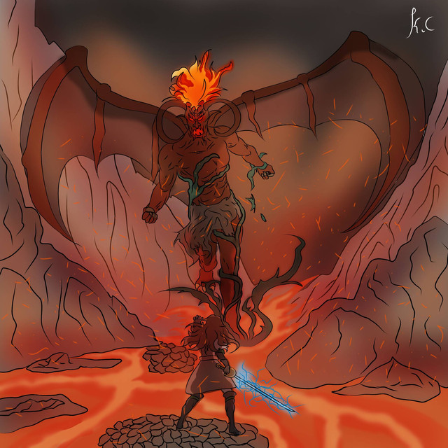 #giant #nature #fire #firegiant #giantmonsters #horns #monster #montañas #originalcharacter #paisaje #sword #volcán #volcanomountain