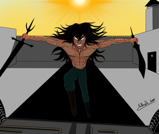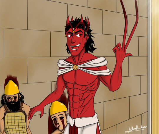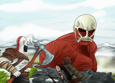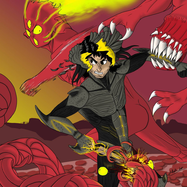 El personaje central lo reconocereis si habeis visto la anterior publicación, además de porque lo tengo de imagen de perfil, aunque puede que en el futuro la cambie. Los gigantes de los lados son una reimaginación/interpretación mía de los gigantes de la mitología nórdica Ymir (derecha, el primer gigante y a partir del cual Odín creó Midgard) y Surtur (izquierda, el rey de los gigantes de fuego y que calcinará Asgard en el Ragnarok)