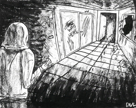 #horror #creepy #digitalart #originalcharacter #blackandwhite #monochromatic #subway #tunnel