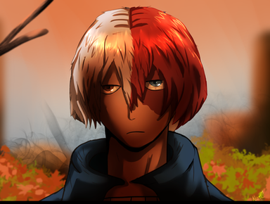 This is Shouto in sunset. What does he thinking about? Or what he sees?Todoroki Shouto from My Hero Academia.