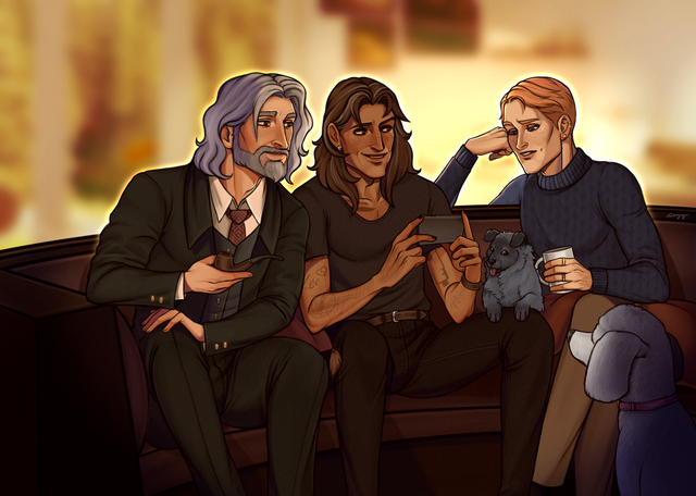 Sam was Asher’s long-time closest friend. He picked him up at the airport after his snowy winter endeavour while his horses were being flown back. The strawberry blonde had already been warned that a very chatty puppy would be a passenger that evening, too. Sam didn’t mind, of course, provided it wouldn’t pee on his nice leather car seat.