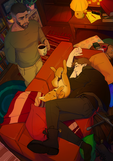 Though Sam had more than one spare room, the lanky Australian opted to flop on his couch, as he always did. He had repeatedly insisted that it was the comfiest couch he’d ever laid upon, and after the stress, activity and emotions he had withstood over the last month or so, it felt so much better. Even the noisy little fluffball, Dumás, eventually tucked up silently upon his new owner’s chest.
