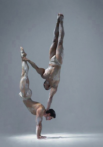 Fantastic idea and realization. The choice of staging and lighting is absolutely perfect. I love the way the one model is looking indirectly at the camera. My only criticism is from form - for me, from a dance/artistic perspective, if the model on the bottom had extended a little more and pointed his feet (difficult considering the circumstances, I do know), it would have elevated this moment from fantastic to exquisite.