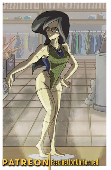 Despite what many "In the know" thought about the witch who ran the adult clothing store, Miss Kurayami did not transform people into mannequins against their will. Aside from the odd shoplifter or vandal.Robin had been a mannequin for so long that she no longer remembered what it felt like to be male. She of coursed remembered being male just not what it felt like, down there. Also, except for her mandatory yearly vacations, she even, almost, forgot that she that she started out life as a human rather then sprayed fiberglass and plastic on a frame.
