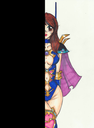 This was a concept or a character art for a webcomic idea I was going to try, still needs refinement, her outfit is; a magicly variable tunic in leotard mode, Jouryman's Tights, boots and cloak.Working name is also Jasmine