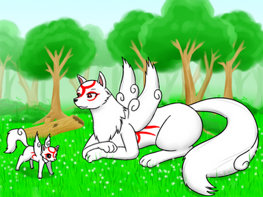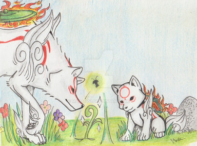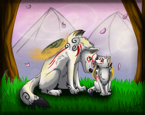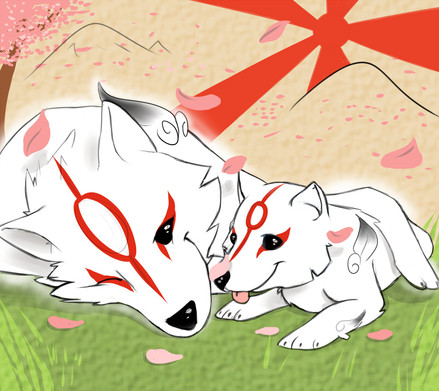 For those that can't tell, it's god-like Amaterasu watching over little Chibiterasu.