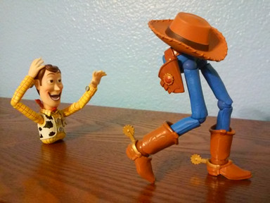Woody: "Here Buzz, I have a present for you. [Turns around] IT'S MY OLD FACE!"