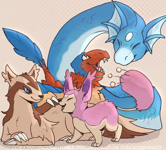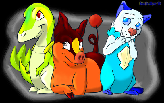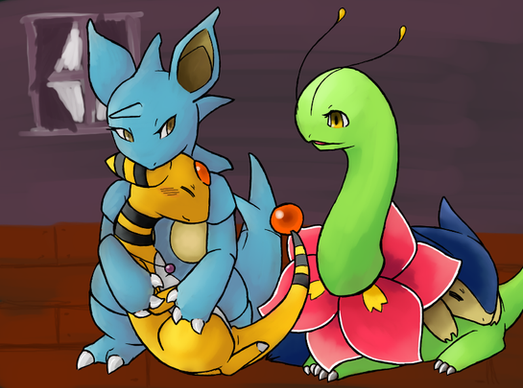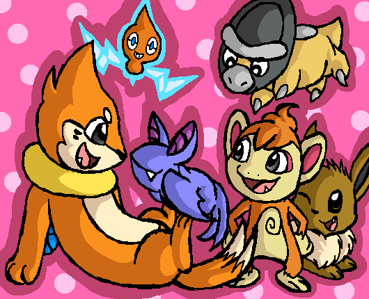 The lovely Pokemon aaaaarrrrreeee; Mr.Bunny and Mrs.Bunny, the Nidorino/a, and then their adopted babbehs Lulu the Pachirisu and Coco the Cyndaquil (who evolved into Quilava about an hour ago but meh).
