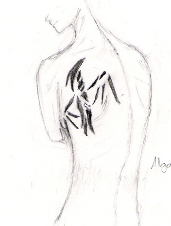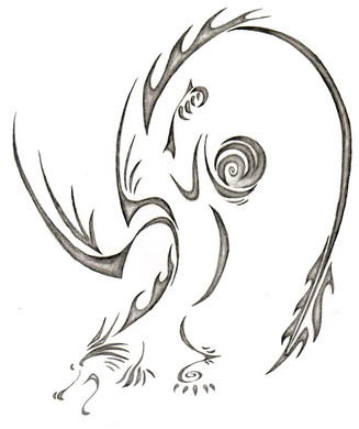 This is the tattoo of the Riders in my Uberstory. It's supposed to be like a flying fox like thing but itlooks a little odd. They also take oaths that are symbolized by the tattoo.Be clear of sight, strong of body, and swift of mind.