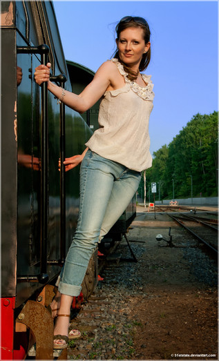 "Pardon me, young lady! But I'm trying to get a picture of the locomotive!"