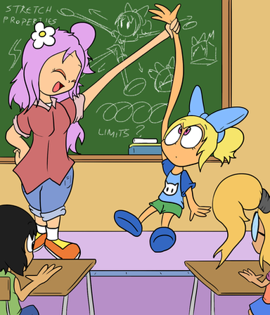 A Basic Commission forKiara is taking an interest in Donna's abilities, wondering how they even work (no one in her world has the ability to stretch like that, not that she's seen), while Whisper is just innocently asking Valery if she has any powers of her own.