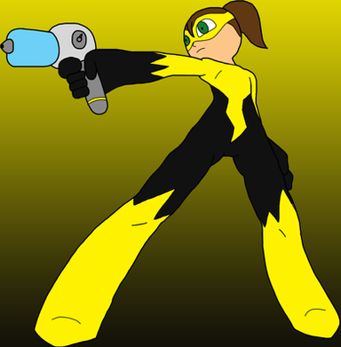 I like the color scheme. Β Reminds me of Tamago from Big Hero 6, and actually like a Bee. Was one of her abilities enhanced speed via electrical surges through her body?Β