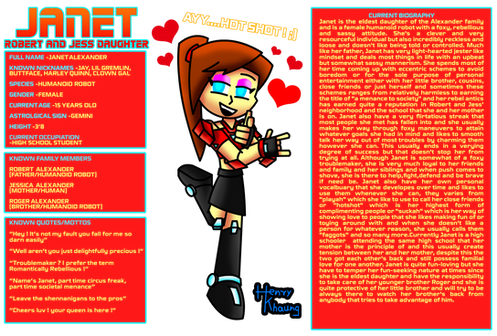 Born and raised in Mexico, Jennifer recently moved to Plainsville in America to work with her uncle, who has a high position at Invent Industries. This was just a few months before the Z'Gore incident in Origins. Knowing she was a genius like himself, he convinced her to join him at his work space and said doing so would help guaranty her a high position at Invent Industries, her dream job basically. There was one condition however, he told her under NO circumstances was she allowed to use her powers. Sadly her uncle is one of those people who thinks humans shouldn't have powers of their own and consider those who do as freaks. He is basically trying to make her act "NORMAL" since she is both a genius and his niece. This of course always made her uncomfortable since there would be times when her gift could have been useful, but didn't act because of her uncle. It isn't until after meeting Donna and the others that she eventually works up the courage to stand up to her uncle and finally use her powers to do the right thing and help people, despite what her uncle wants.