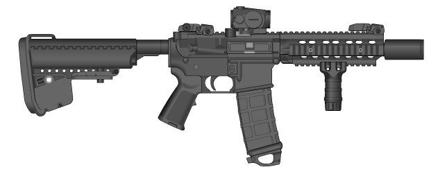 The M18 Assault Rifle was one of three competing designs submitted to the Draconian Armed Forces in 1993 for trials to replace the aging M15 Assault rifle. After many field and reliability tests, the M18 came out on top and became the new standard service rifle of the Draconian Armed Forces in 1994. The gun features stronger materials for the handguard, receiver, and barrel. A light-weight stock and rail attachment system were added so that a soldier can make the rifle more comfortable to use. The magazine was also carefully designed in order to make reloading easier.