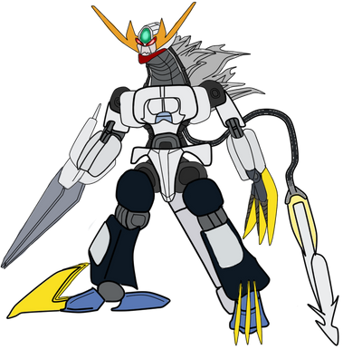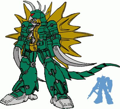 The fourth of my Mecha Kaiju. It's named the way it is, because I wanted to avoid making it just another Mecha Godzilla. A heaping load of credit goes to Mark Simmons for providing the bulk of the parts I used here.The little blue silhouette next to it is a to-scale Zaku I.
