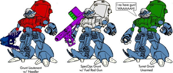 Optional Weapons: Can use any handheld weapon that uses solid ammo or replaceable batteries that ZAFT makes for its mobile suits, though typically a ZAKU Assault Rifle or a DOM Gigaplex Bazooka